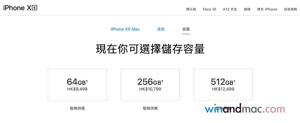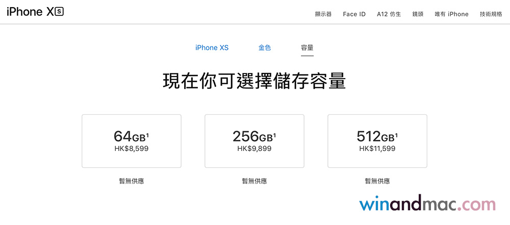 iPhone XS和iPhone XS Max將可在9月14日3:01pm開始預訂,兩部機最大容量的型號售價開始破萬,相當誇張。其中6.5″螢幕的iPhone XS Max的512GB型號,售價要HK$12499,而256GB型號售價為HK$10799,至於64GB售價則為HK$9499。5.8″螢幕的iPhone XS的512GB型號同樣頗萬,售價要HK$11599,而256GB型號售價為HK$9899,64GB售價則為HK$8599。