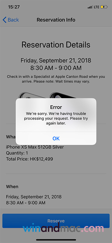 我們發現,香港蘋果並沒有準時在3:01pm開始預售,要等到大概3:10pm才真正入到。入到後情況亦算是緊張,iPhone Xs Max部份型號的出貨時間亦快速地由原本9月21日,延至10月3日。至於iReserve亦因為太多人去按,無論揀選任何型號或時間或店舖,竟然都出現錯誤訊息。最離譜的是,若是使用Safari,用電腦載入蘋果網站亦不停出現loop死的問題。