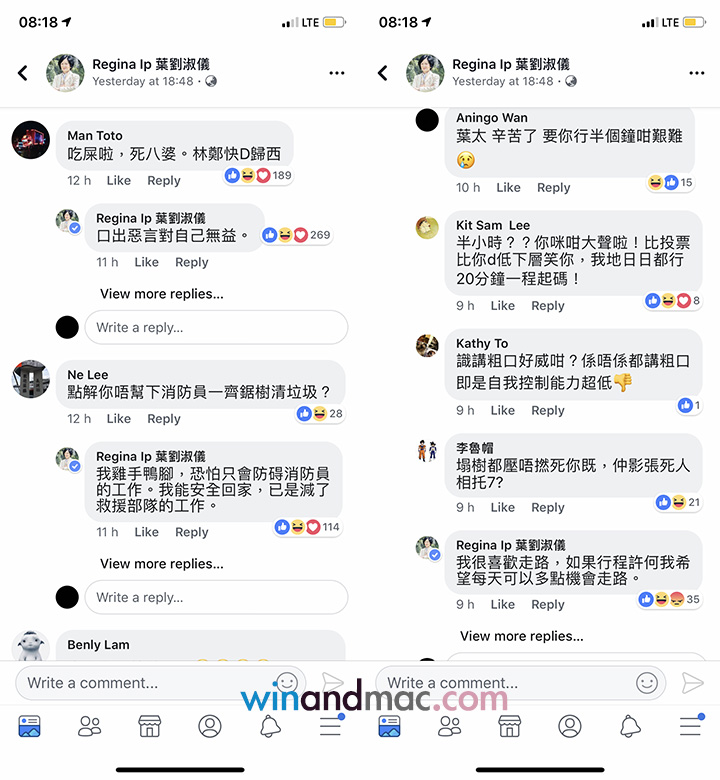 很多議員或政治名人都會玩Facebook,但有不少都會關閉留言,更不要説會否回應網民留言。特首林鄭月娥Facebook談打風,不少香港市民立即在其Facebook留嬲嬲和狂罵出氣。而新民黨的葉劉淑儀也有談到山竹襲港的事情,網民也留言狂罵,但葉劉竟然大方回應。