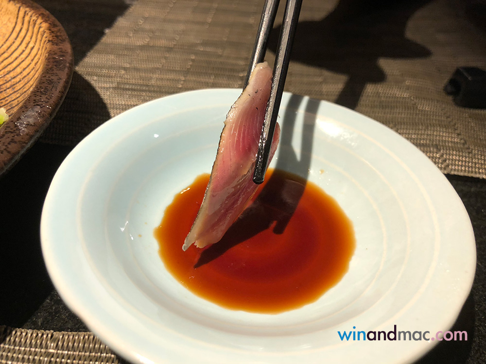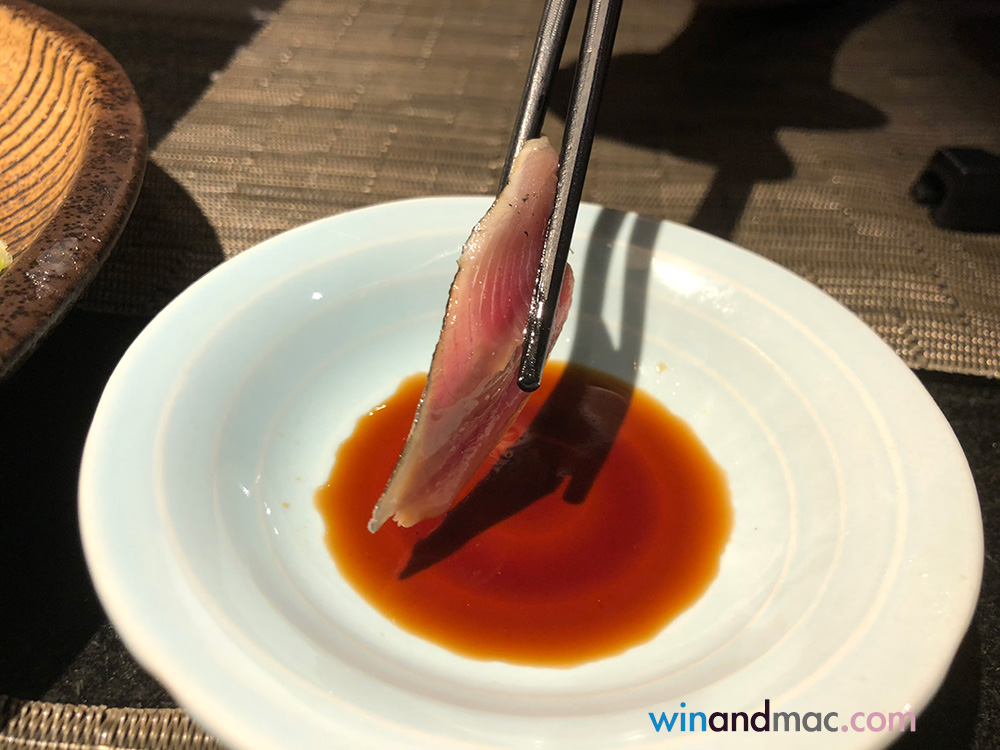 雖然香港仍然很熱,但日本情況始終與香港不一樣。而秋刀魚一直都是日本秋季的食材之一,除了大家所熟識的鹽燒外,也有多種食法。例如這款炙燒秋刀魚(HK$158),做法就相當講究。本身由大廚細心切割成薄薄一片,然後透過炙燒溶化魚肉表層油脂,所以表面像是熟了,但其實反轉的時候可看到有刺身的部份,所以口感相當嫩滑。最重要的,是當中有濃郁的魚脂香味,但不會腥,停留在口中,值得令人回味。