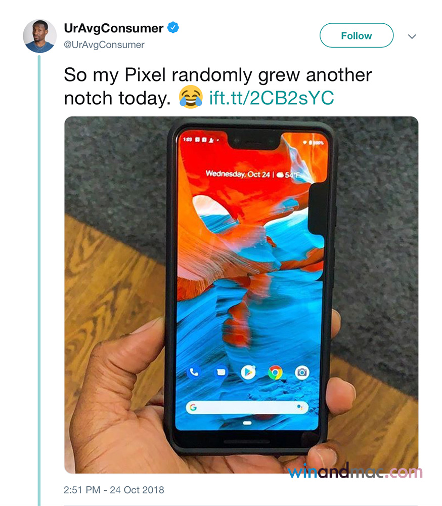 So my Pixel randomly grew another notch today. 😂 https://t.co/c6Pff9MVmW pic.twitter.com/ugjfLmCkDZ