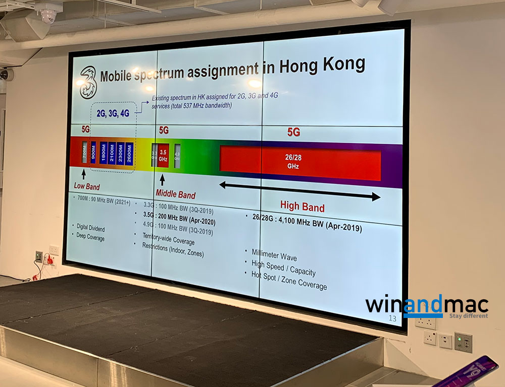 3香港於今年的5月和6月期間,分別獲得26GHz/28GHz及3.5GHz的臨時許可證,進行5G室內和室外的測試,3.5GHz和28GHz為兩個重要的5G頻段,前者覆蓋廣,後者速度快但覆蓋較細的範圍。於2020年開始,大家可以開始感受到5G速度的好處和不同的應用。
