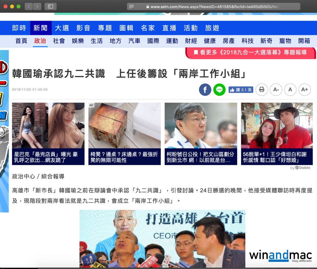 曾説過「拚經濟、不講政治」的韓國瑜,一上場卻談九二共識,其實就是談政治,讓大陸進入台灣更方便,就像他所説的「條條大路通發財,條條道路通賺錢」。這也不是一個問題,反正台灣人、香港人、中國人,其實都沒有太大分別,全部都是中國人,搵錢最重要,民主政治同志等議題,放一邊,不要煩。