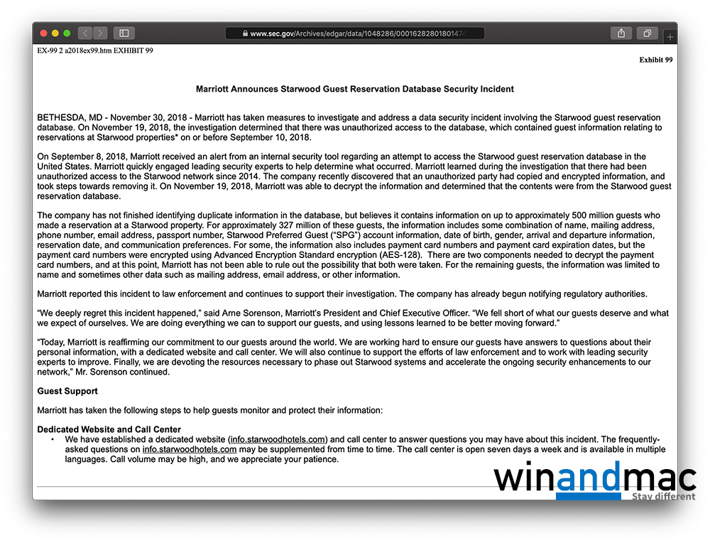 因航國泰航空後,又再有大型企業洩露顧客資料。今次輪到全球擁有多間酒店的Marriott的Starwood Hotels系列,當中多達5億的用戶資訊被偷取。Marriott已經即時交給美國警方處理。
