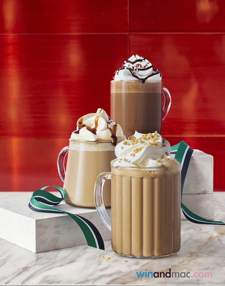 除此以外,過往的聖誕飲品今年也正式回歸,今年大家可以享用到拖肥果仁脆趣鮮奶咖啡、薑汁鮮奶咖啡以及全新的聖誕薄荷朱古力咖啡(中: $43、大:$47、特大、$51)。