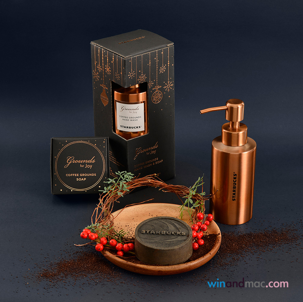 他們從分店收集的咖啡渣製作洗手液及手工皂,製作成咖啡渣潔手套裝(每套HK$248)(上圖),給予他們一個新生命。每份套裝均包括一支以咖啡渣製作的洗手液及一個咖啡渣手工皂,洗手液更以金屬瓶包裝,感覺更好。商品收入扣除成本將全數撥捐雲耕一族,以支持本地耕作的發展。另外,他們將於12月1、2、8及9日連續兩個週末舉辦花藝咖啡渣盆栽工作坊及聖誕樹咖啡渣蠟燭工作坊,有興趣的請留意Starbucks香港官方Facebook公佈。