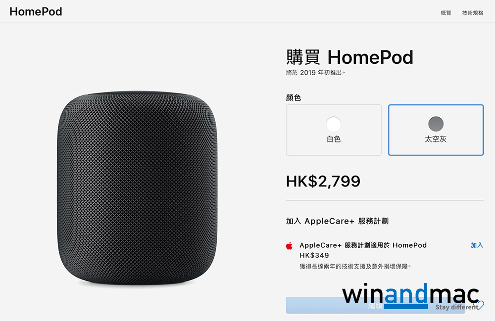 蘋果香港也已經有相關HomePod專頁,大家從中可看到相關功能,從中也可以知道香港行貨版都支援廣東話Siri,切合香港用家需要。它有黑白兩種顏色選擇,售價為HK$2799。