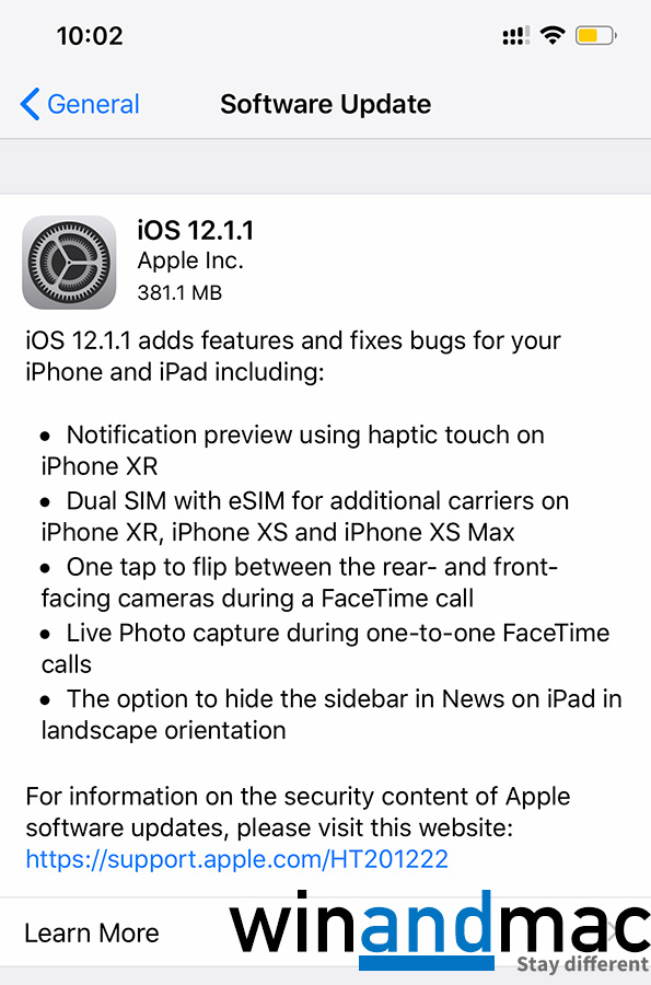 iOS 12.1.1主要是針對改善FaceTime功能,用家現在可在聊天時重新拍攝Live Photos,只是在群組拍攝時不可以。另外,用家要轉換鏡頭也變得更方便。另外,若果你是iPhone XR用戶,更新後也可以開始玩到Haptic Touch,長按指定地方可以有更多功能選擇。macOS則加入RTT支援,News app功能可一按打開Safari,以及修復iTunes有時無法在第三方喇叭播放音樂的問題。所有更新都有一些修正。
