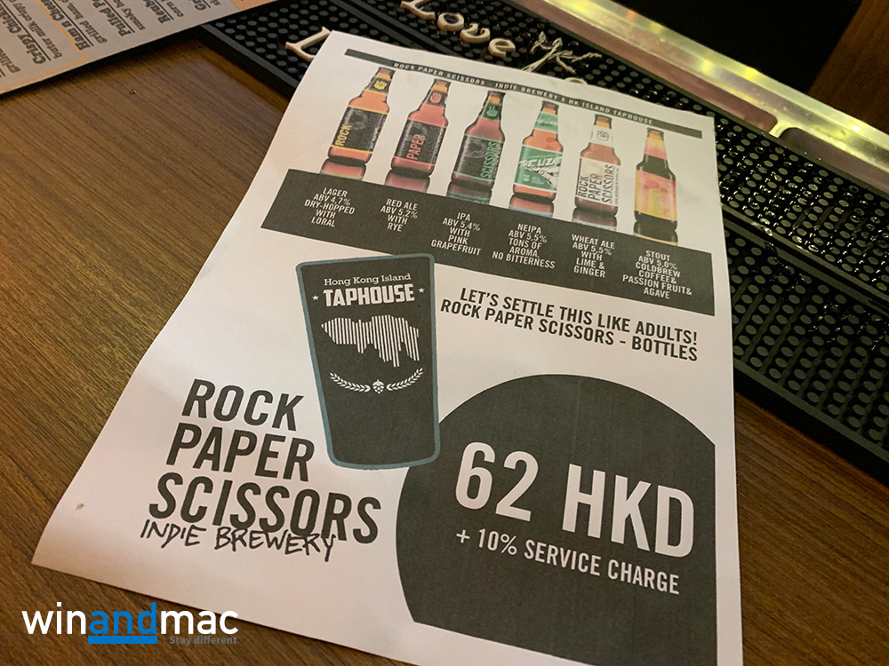 他們初期提供樽裝,其後會有Tap供選擇。樽裝開蓋後蓋上會有包剪揼圖案,與朋友一同暢飲時又多一樣可以玩。