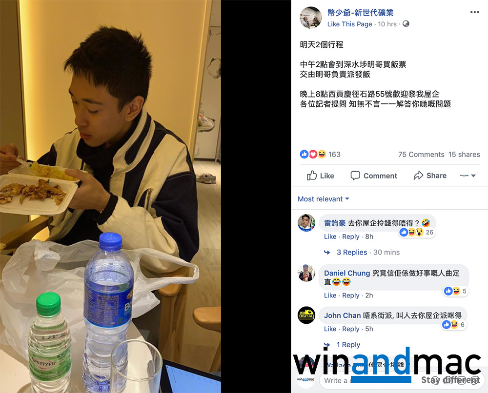 幣少爺在Facebook稱自己行得正企得正,車和人仍然健在,不似其他倫敦金騙子。他稱今天會有兩個行程,「中午(下午)2點會到深水埗明哥買飯票,交由明哥負責派發飯」,夜晚八點則歡迎各位去他在西貢的獨立屋,邀請各位記者提問咁話。