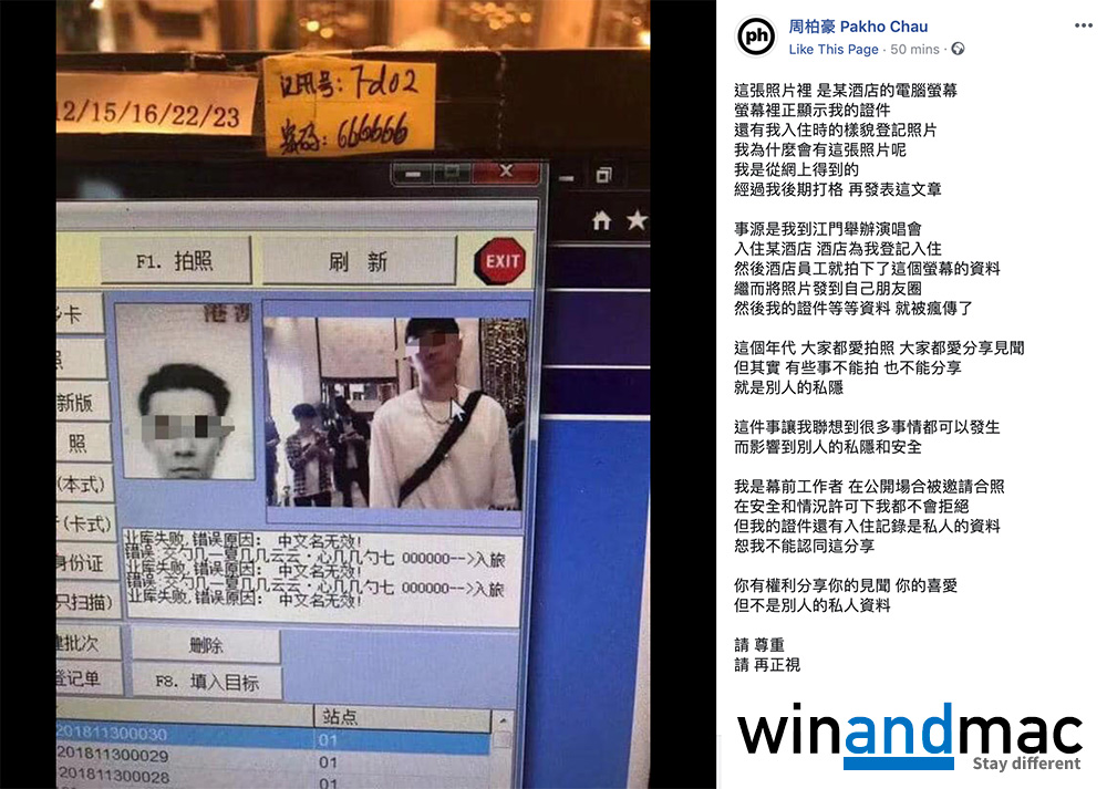 香港人愈來愈不尊重私隱,最重要有免費有著數便可以,不過來自中國香港的歌星周柏豪近日於江門舉辦演唱會,入住一間酒店時,有酒店員工拍下了上述螢幕的資料,當中有齊周柏豪的私隱,有關員工更傳送至其朋友圈廣傳。