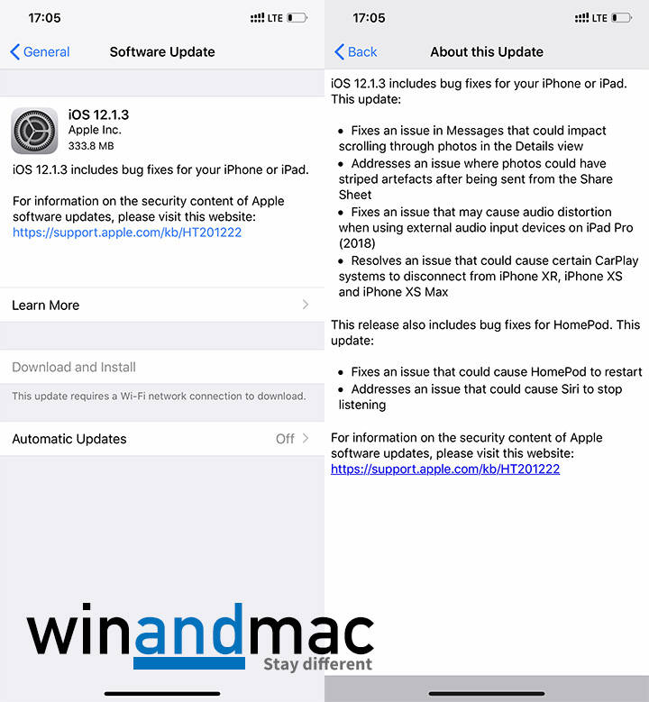 macOS Mojave更新詳情沒有寫太多,都是主要是提供兼容性修正和安全更新等。而iOS 12.1.3則針對訊息、相片、CarPlay等,如你有遇到上述圖片中提到的問題,或許可在備份重要資料後,一試更新看看能否解決。