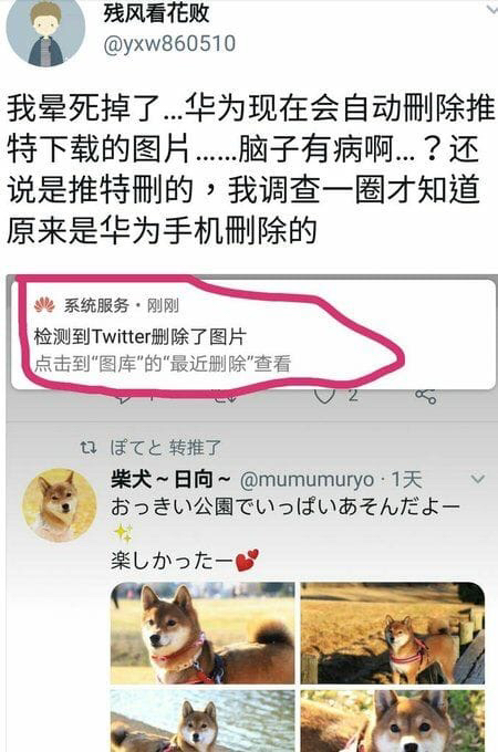 中國政府經常宣傳華為手機好安全,又推介別人使用。不過,相信熟識中國的香港人,也知道如何選擇。最近有大陸網友翻牆上Twitter,只是看下一些柴犬的相片,華為手機竟然自動把Twitter相片刪除。