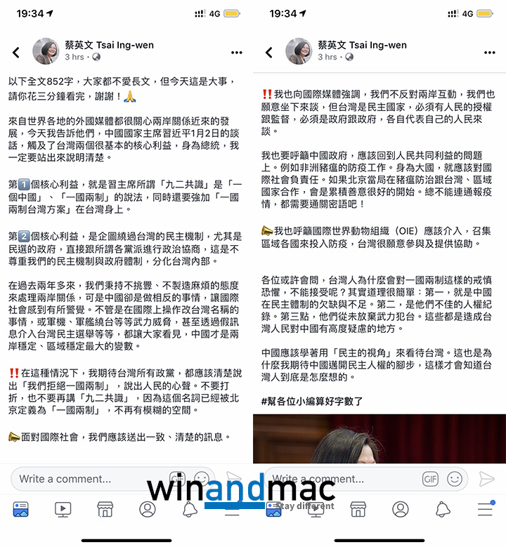 台灣總統蔡英文面對習總的講話,十分強硬力回應稱台灣不會接受一國兩制。過了幾天後,很多人自發地翻譯成多種語言,希望全球都聽到台灣人的心聲。現在,蔡英文發了一篇長文,總共852字,她明白大家不愛長文,但認為是重要事情,希望大家細閱。