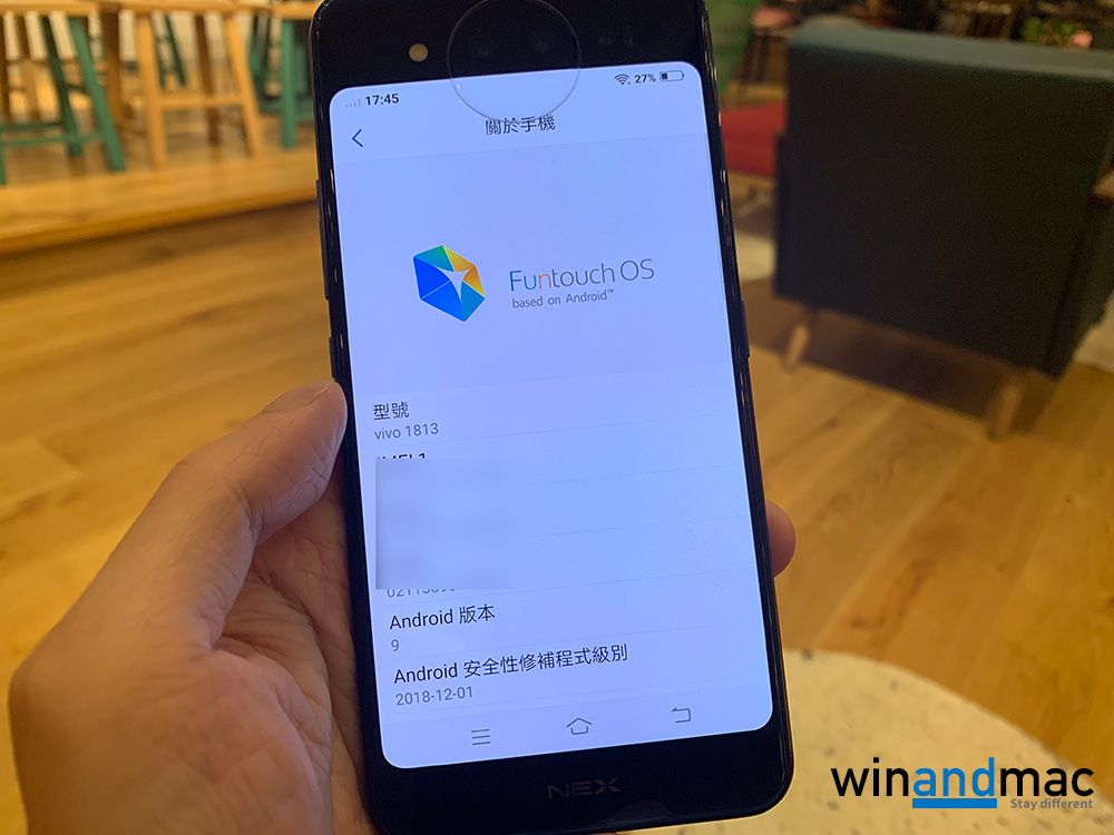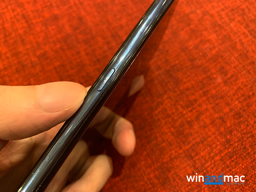 Vivo NEX一邊有音量加開關按鈕,另一邊則是一個印上Vivo的按鈕,按有音量旁邊的開關按鈕會啟動前螢幕,按另一邊印上Vivo按鈕則可啟動後面的螢幕。上圖是前方的AMOLED螢幕,都達6.39″,解像度更是1080 x 2340。