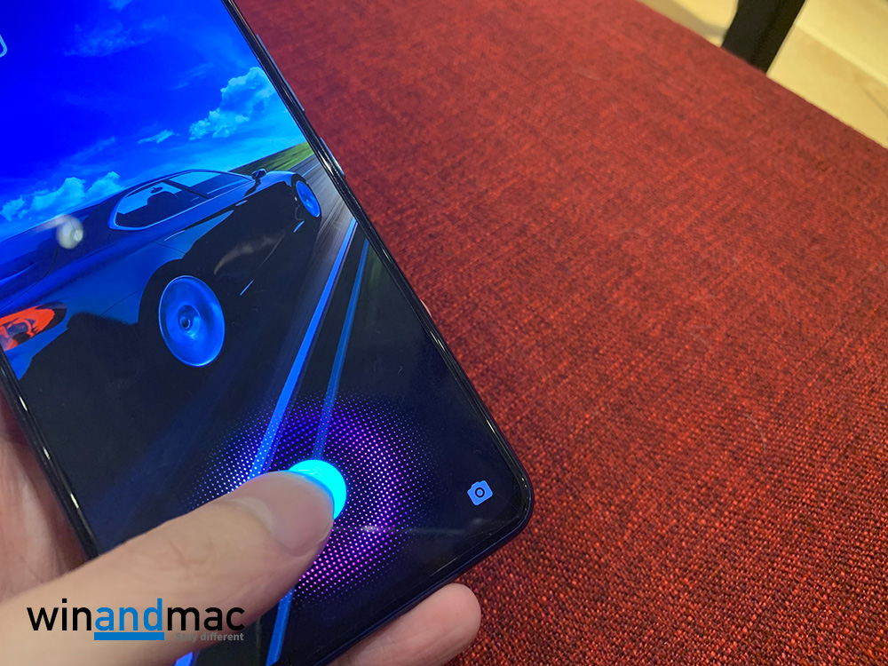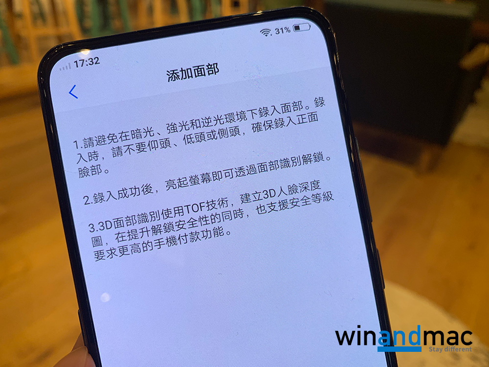 幸好的是,Vivo還有在這部雙芒機加入指紋辨識,本身設在前方螢幕底下,不阻礙顯示,用家只要如圖按住螢幕就可以解鎖。至於後方螢幕的鏡頭也支援解鎖,有趣的是Vivo NEX雙屏版還寫明,他們的面部解鎖可以偵測3D人臉深度,比起一般常見的Android平價手機的臉部解鎖不同。