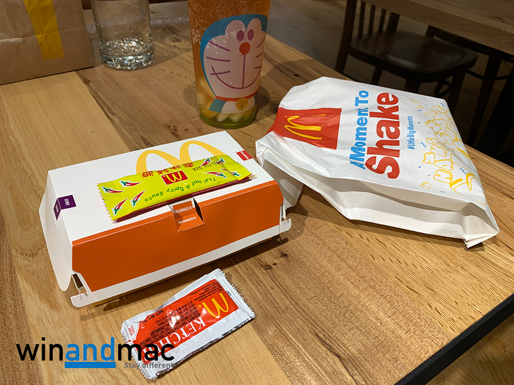 我們在上環公司附近的麥當勞實試,雖然是晚餐時間,但人流不算是太多。有食開的可能都知道,麥當勞香港其實愈來愈昂貴,若果要叫加大的脆香雞翼套餐,埋單都要HK$45.5。我們試過問職員可否要多一包泰式辣醬,職員很快的反應説:要俾HK$1。