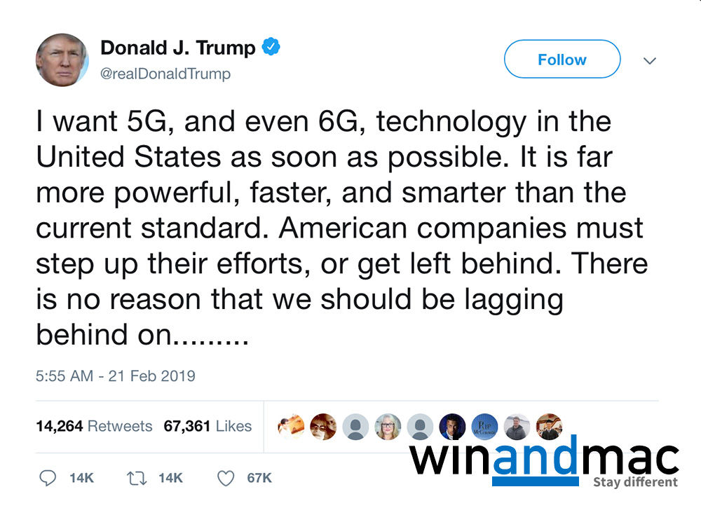 侵侵在Twitter上指,他希望有5G,甚至乎6G。他提醒美國公司,要努力發展科技,無理由再拖慢腳步,落後於人。雖然整個內容都無提到中國,但有不少外國評論認為,侵侵擔心中國領先5G技術,就算美國如何提醒華為的產品有安全問題,歐洲可能為了面子不想輸給美國或扭計,繼續採用華為等設備。