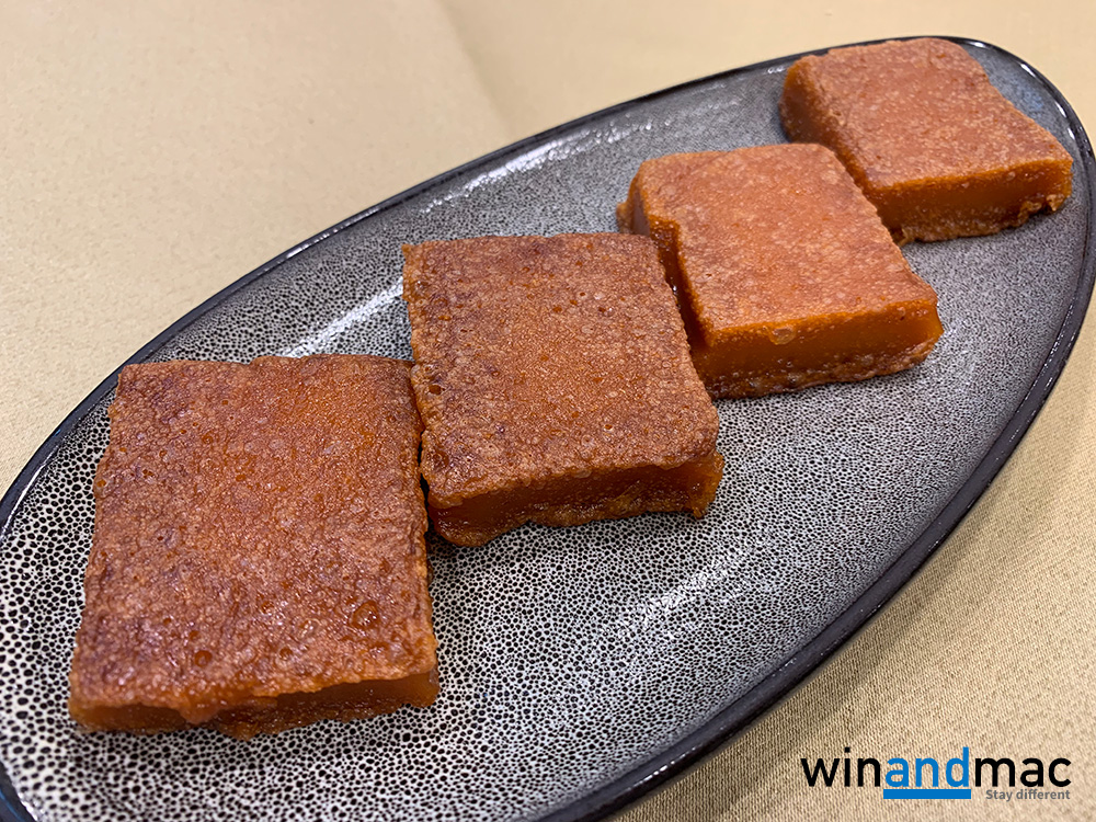 首先搶試的是這款清潤椰汁年糕,因為小編最愛就是年糕。他們不用清水,反而用椰漿做底。所以,吃下去的時候,小編可以感受到有椰香。年糕很多時吃得多,一不小心失控食多咗的話,太甜太膩會不舒服。不過,這款年糕就不會太甜,口感煙韌不粘牙,入口後愈食愈想食,但又不會膩。當然,大家不要吃得太多太誇張。