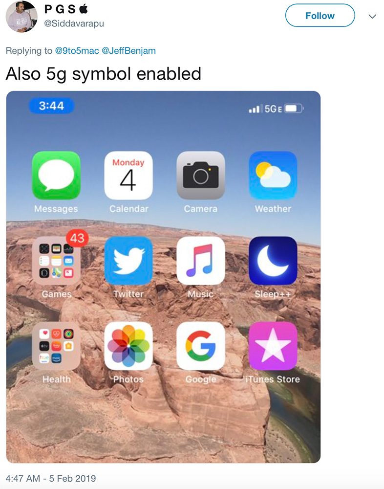 AT&T早前夾硬把4G LTE當作5G,並在手機上顯示,備受不少人評擊。可惜的是AT&T懶理,後來有人測試後發覺也只是4G LTE Advanced的速度。當大家以為只是Android會顯示為5G,蘋果也助長此行為。於iOS 12.2測試版中,有用家開始看到5G E Logo。