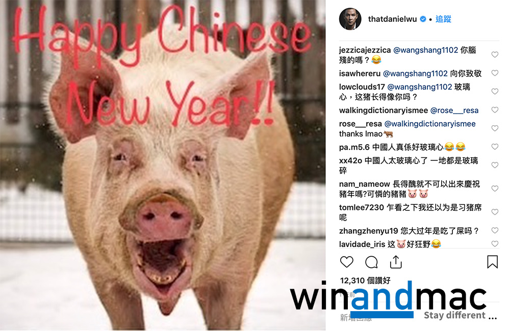 究竟什麼東西,才不會打破大陸人的玻璃心,相信很多人也沒有一個切實的答案,因為玻璃心不滿起上來,什麼人也防不了。就像男神吳彥祖Daniel Wu在Instagram祝大家新年快樂,他亦很識做寫Happy Chinese New Year而不是Happy Lunar New Year,還用了標準的普通話拼音Xin Nian Kuai Le,仍然唔小心打破了大陸人玻璃心。