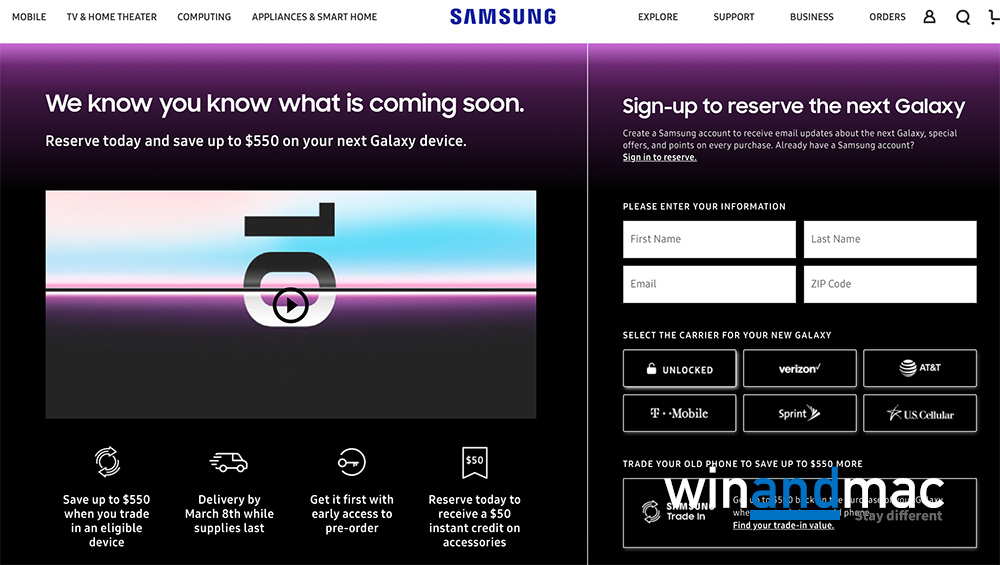 有興趣的話,可以按此處看看,當然要身處美國才可以登記預購,香港暫時未有。不過,大家亦可從網站中看到,Samsung Galaxy S10最遲將於3月8日付運。若果以合資格的舊機轉換,最高可獲US$550回贈。Samsung亦鼓勵美國用家即日登記,因為用家可獲US$50購買配件折扣。