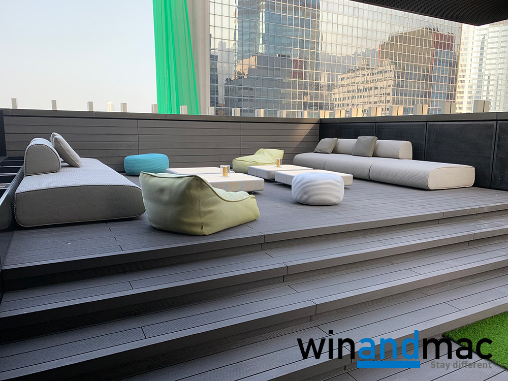 Spaces大新行有一層是超大的活動場地,空間達2,200尺,時租為HK$5200起跳,若走出去天台還可以看到海景。
