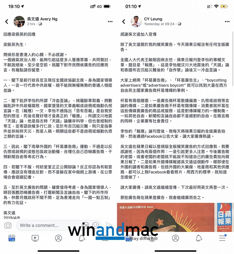 小編覺得成件事柒咗的一刻,並不只是梁振英作出異常冷靜和大方的回應,而是冷靜下來一想,籌到16萬後登廣告只是為了激一激人,好像是小朋友打架打輸了,要大大聲話俾先生知一樣。説得再難聽一點,就像自瀆般完了便算。更何況,從回應可看到梁振英只是有一點點生氣,但整體都是異常大方,因為梁振英寫道要感謝吳文遠,同時又暗示西方傳媒一旦報道事件,外國品牌憑西方標準知道日後要如何對待蘋果日報。