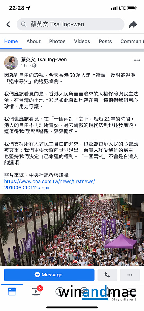 高雄市長韓國瑜被問到香港6.9反送中示威時,表示「我不知道,我不曉得」。幸好目前台灣總統蔡英文不是同路人,蔡英文一直也很留意香港,日前反送中示威遊行時,也寫了一篇文章,再度提醒台灣人自由得來不易。