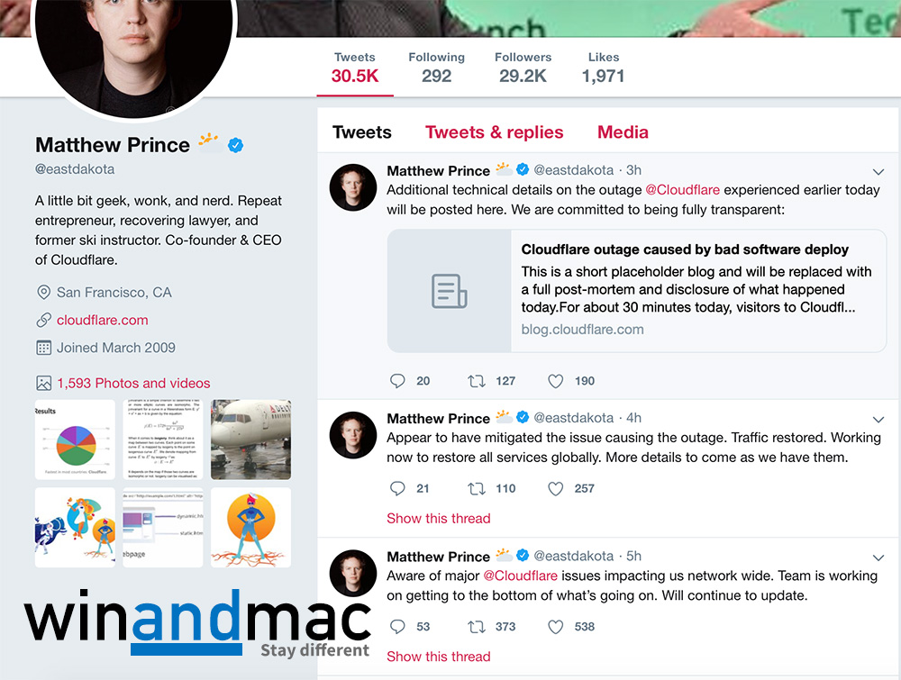 Cloudflare創辦人Matthew Prince亦有在Twitter上談到有關事件,當有用戶向他投訴今次事情時,Matthew立即也認同今次事件不可接受。Cloudflare其後也指會想好方法,避免同類事件再發生。