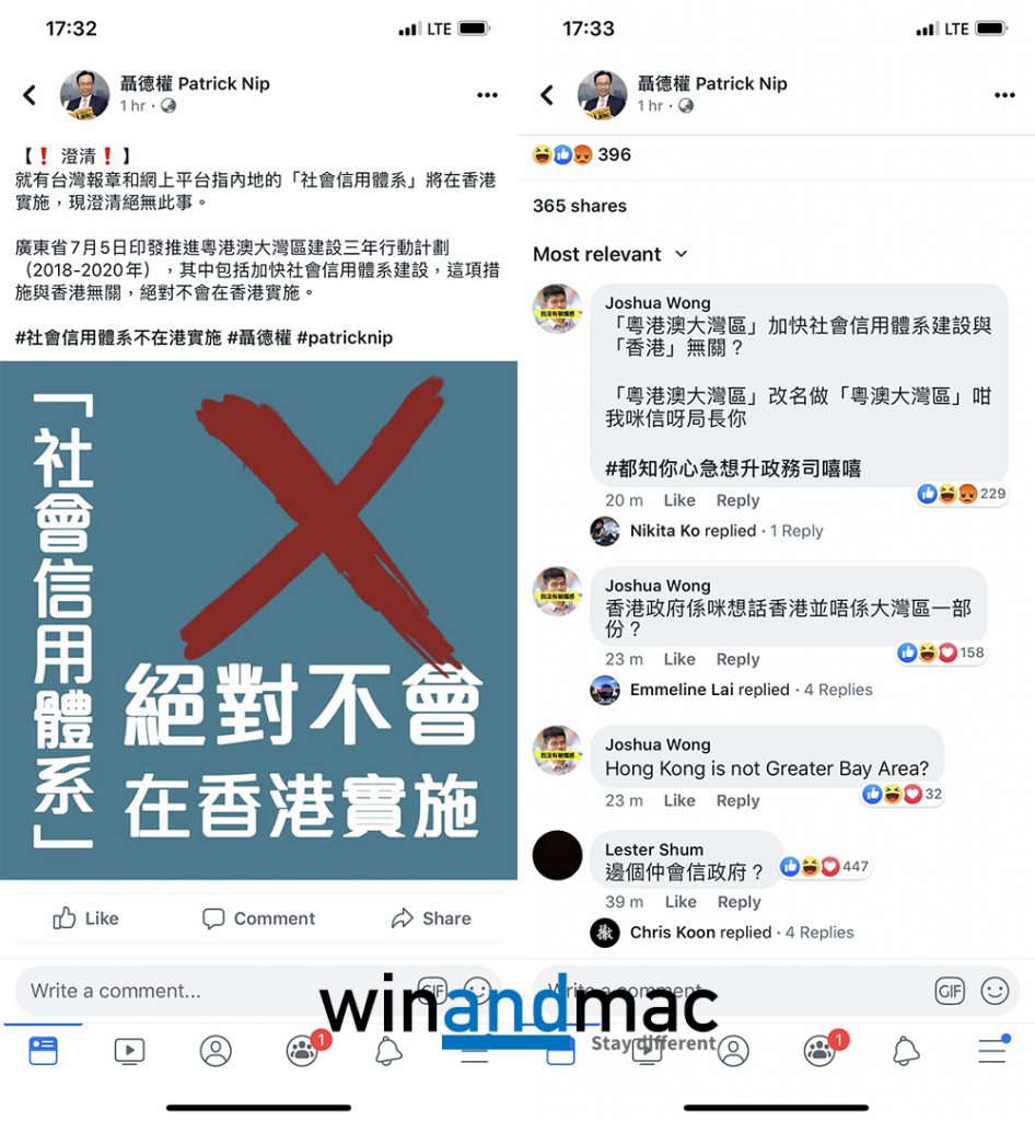 當扣至一定分數,很快就會受到不同限制,例如無法借貸,無法出國,又唥無法使用一些政府設施等,相當恐怖。政制及內地事務局局長聶德權Patrick Nip於Facebook澄清,稱有關信用體系評分絕不會在香港實施,唯很多網民都不相信政府,並笑稱聶德權分裂祖國。