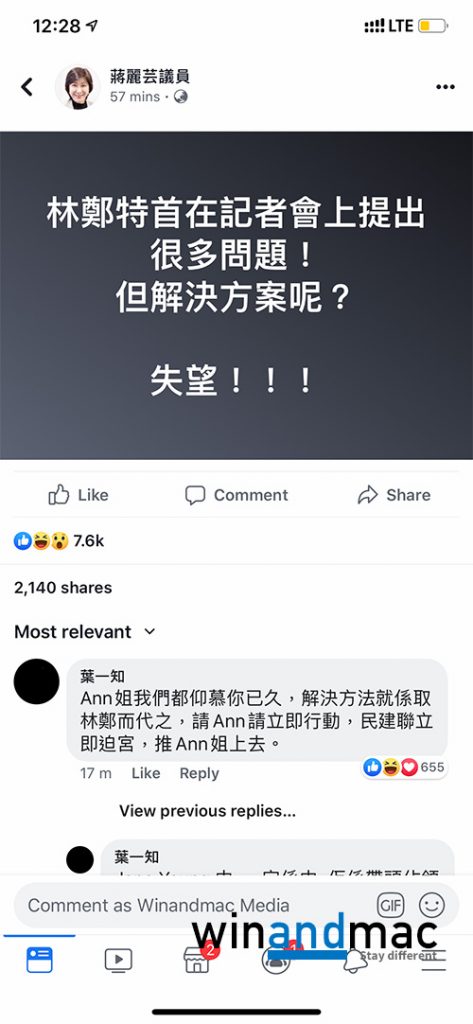 像今天林鄭舉行記者會後,建制派民建聯蔣麗芸議員,竟然發文章,直指林鄭沒有解決問題,對她很失望。似乎,林鄭與建制派的裂痕,一點也沒有因為時間而沖淡或修好。