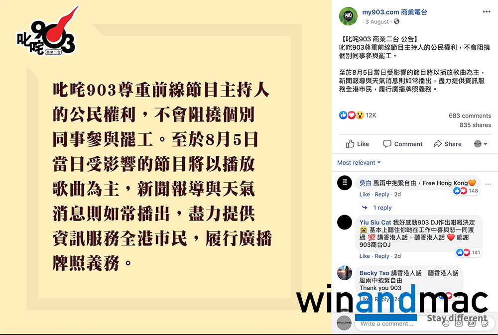 今日是全港大三罷的日子,很多人或許仍在想是否真的要罷工。香港電台和商業電台的DJ早前已經發出公開信,聯名表明今日會罷工。大家不約而同在公開信表示要珍惜香港自由,而商業電台一、二台也有發出通知,稱不會阻止員工個別參與罷工行動。