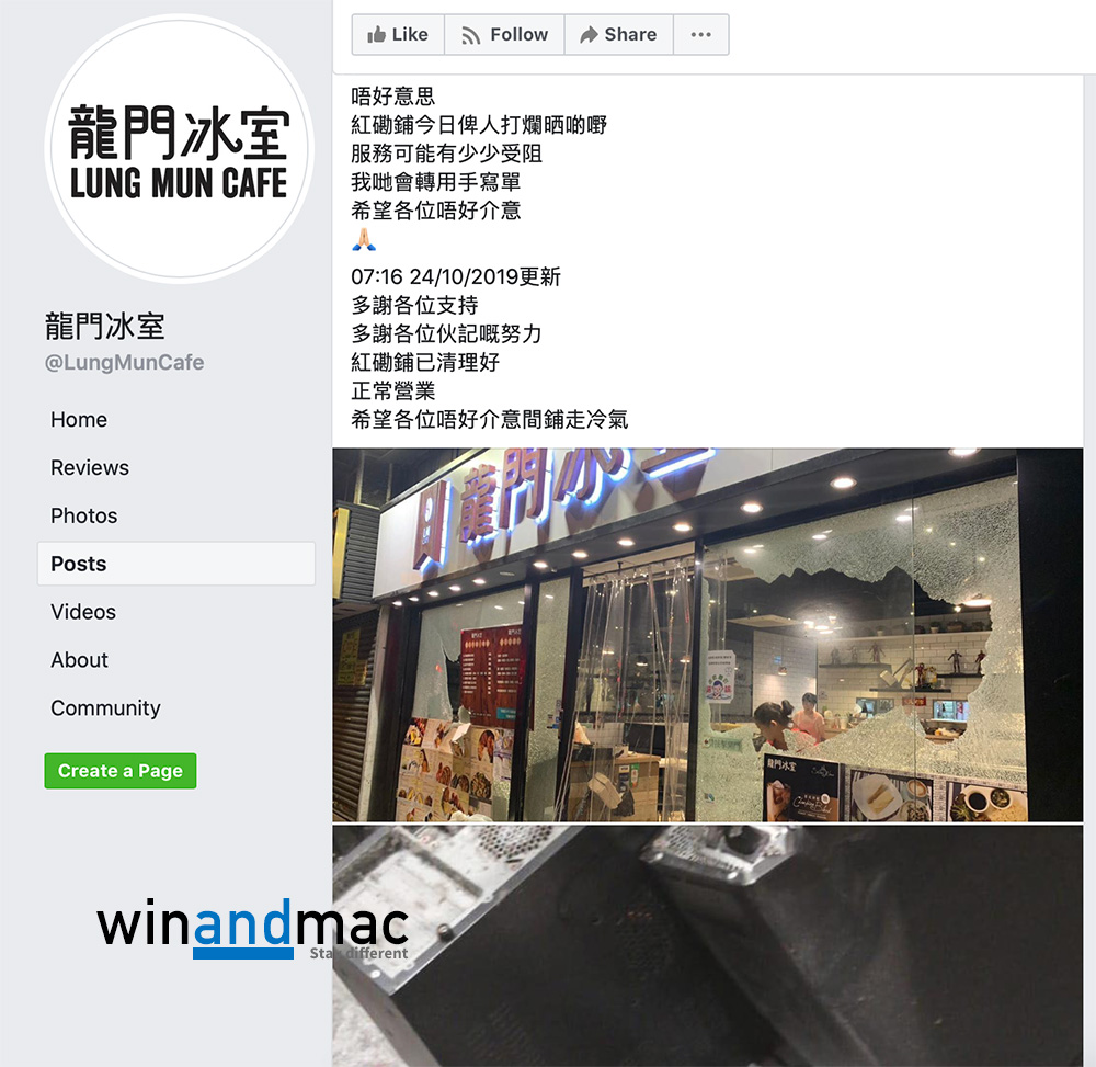 因為多次支持反送中抗爭行動的龍門冰室,幾乎每一天都大排長龍。可惜的是,今朝龍門冰室通知各位fans,稱紅磡店受到破壞,從相片看來情況都算嚴重。不過幸好其員工十分努力,於早上七點左右已清理好。