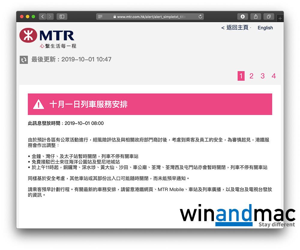 請乘客預早計劃行程。有關最新的車務安排,請留意港鐵網頁、MTR Mobile、車站及列車廣播,以及電台及電視台發放的資訊。