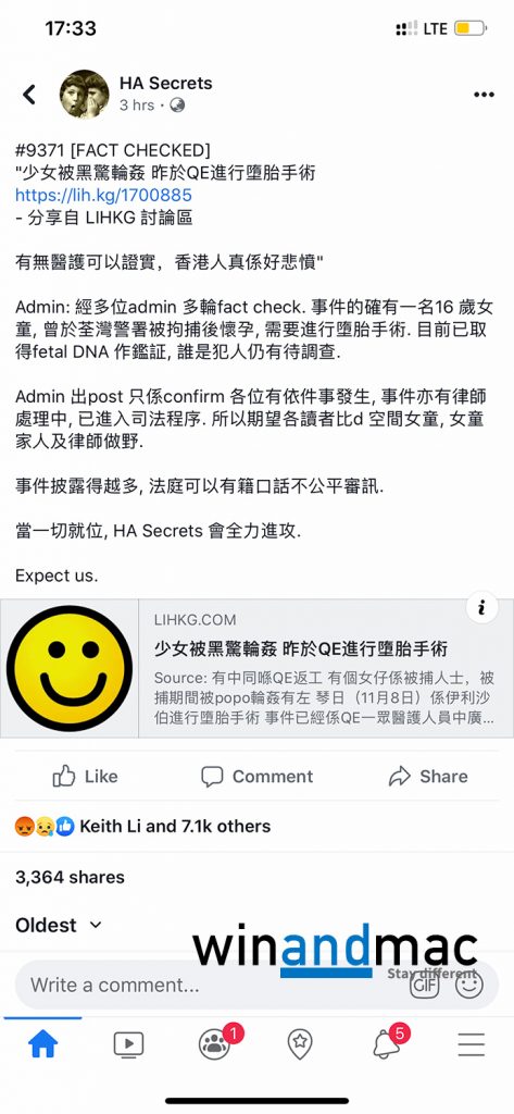 一直有不少醫護人員爆料的Facebook Page HA Secrets,主動做了不少Fact Check,不幸的事有關消息獲得證實是真的。唯Admin提醒各位網民,有律師正跟進事件並處理中,事件已進入司法程序,希望大家給予空間給女童和家人,避免因為事件披露太多,令法庭有藉口話不公平審訊。