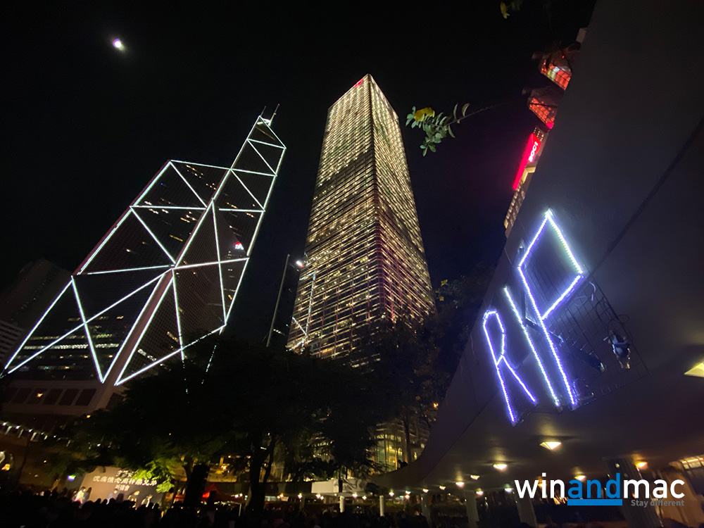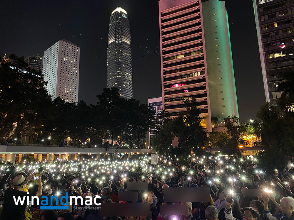 現場祈禱和唱詩歌時,不少人拿起手機,開啟電筒功能,照亮了遮打花園。