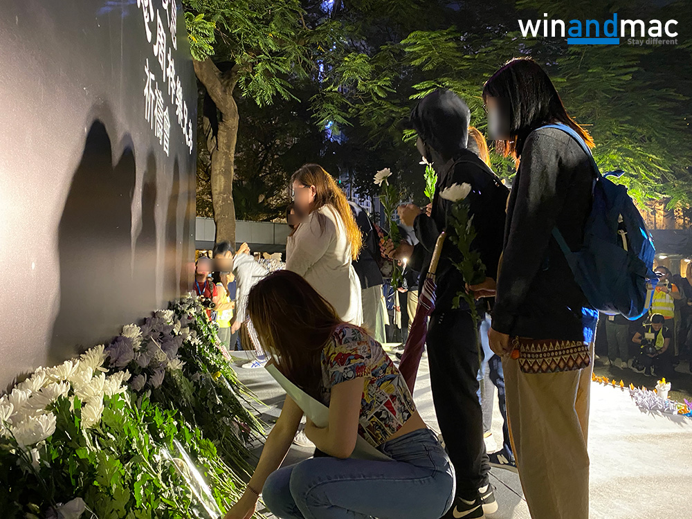有人獻花後忍不住與朋友擁抱,痛哭成淚人,場面悲傷。