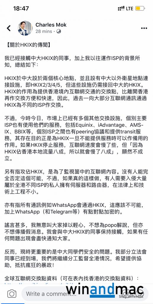 謠言甚多,我無意叫大家掉以輕心,不想為popo解說,但亦不想傳播假消息。我會與中大HKIX的同事保持接觸,如果有任何問題出現會盡快通知大家。