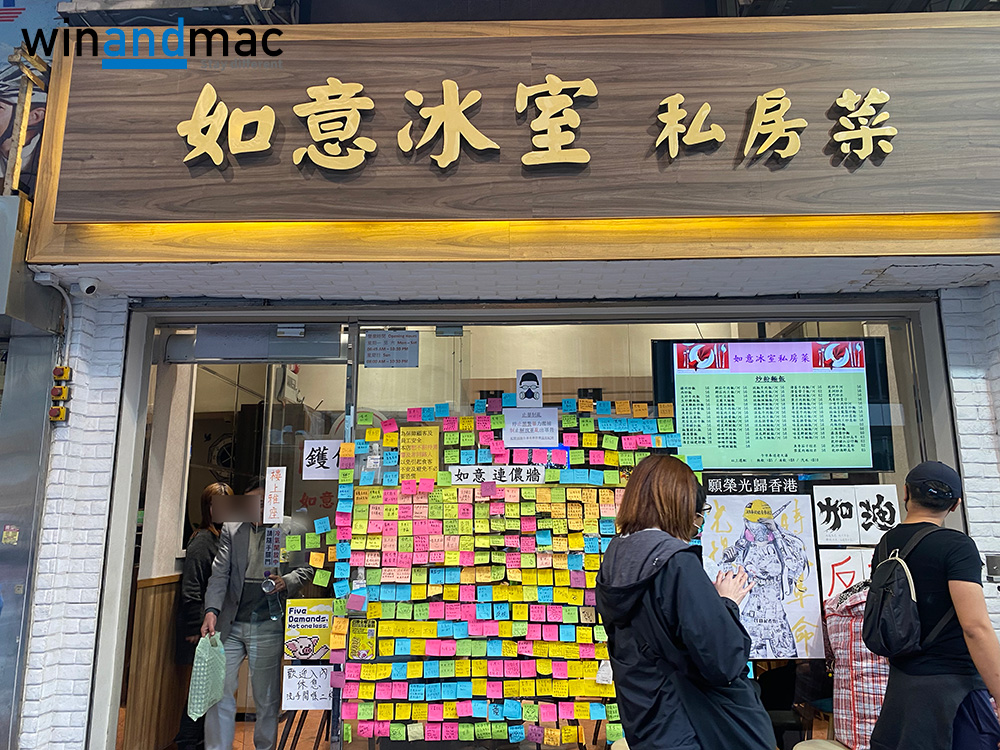 於遊行路線上的如意冰室私房菜,外面的連儂牆有不少人留低便條紙表達心意。