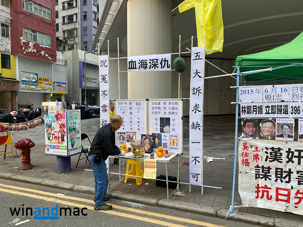 有人在金鐘位置設置靈位,拜祭早前犧牲的抗爭者。