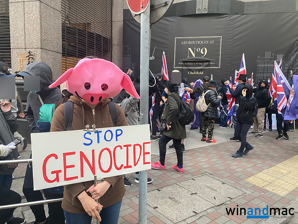 有人戴起連豬的面具,希望中共不要再殘殺香港人。