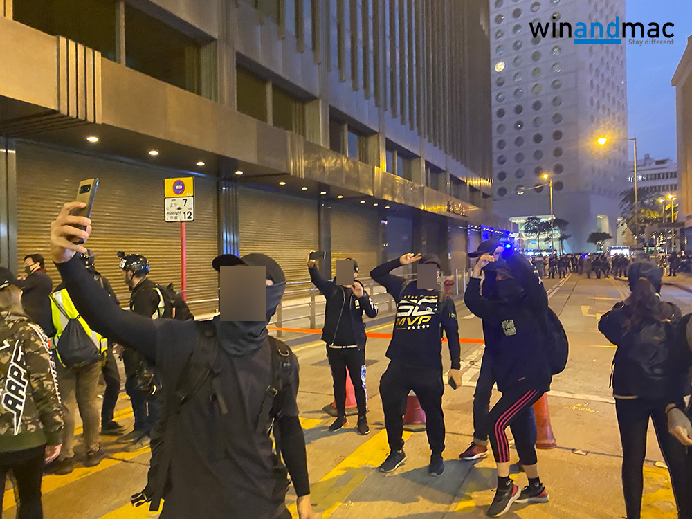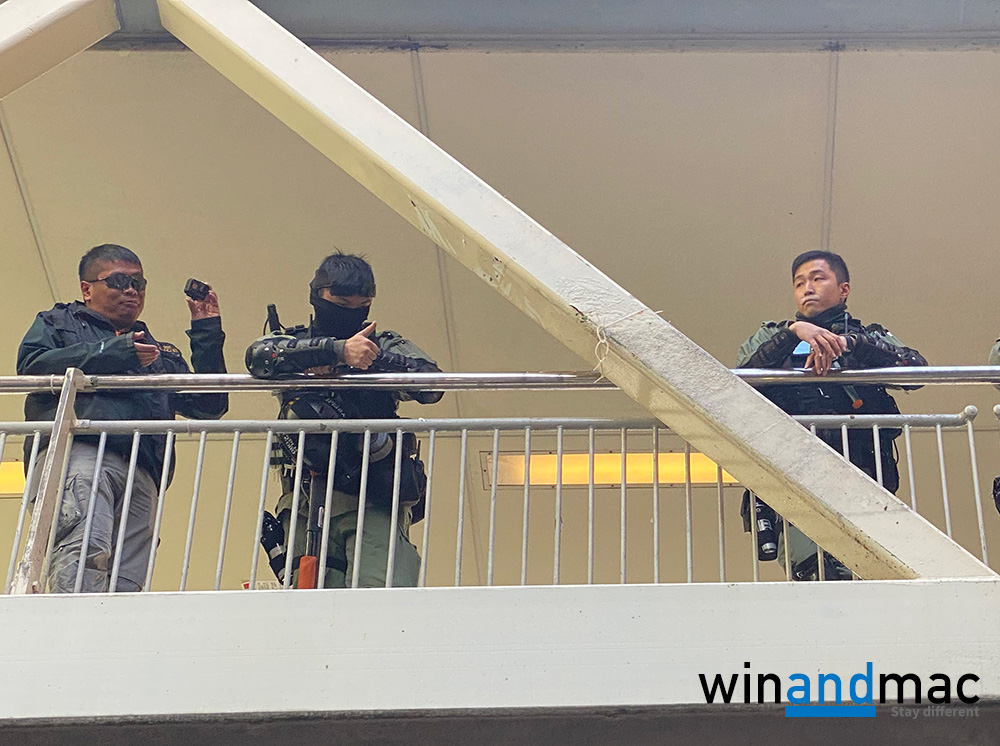 沿途都有不少警察駐守戒備,我們路經灣仔站的時候,看到橋上的警察竟然舉起手指公,未知原因或代表什麼意思。