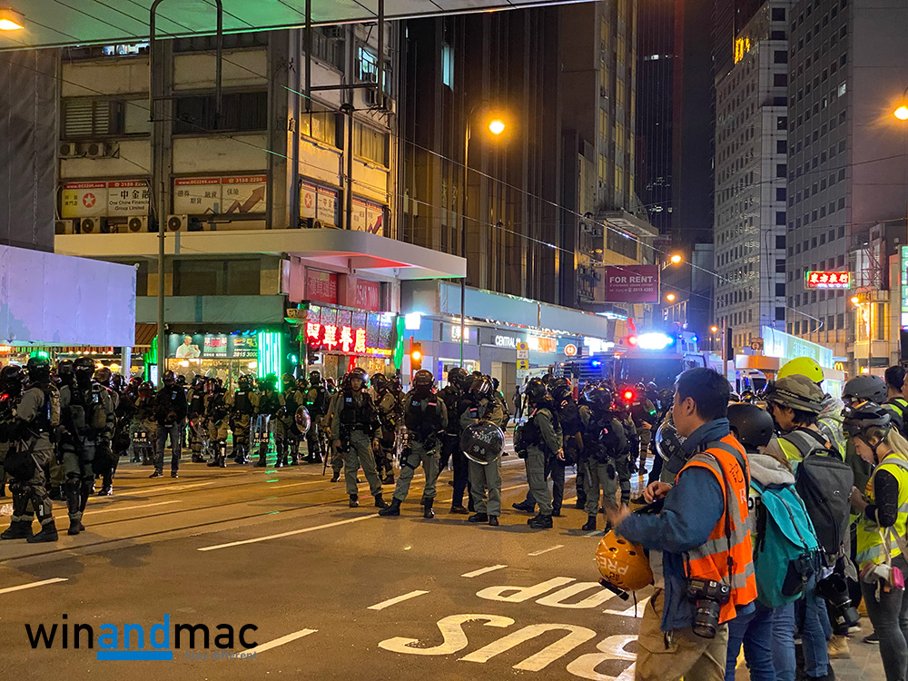 我們記者向前方行的時候,的確看到有大量防暴警,我們採訪時一切正常,但據其他傳媒報道,後來他們推撞在場記者。