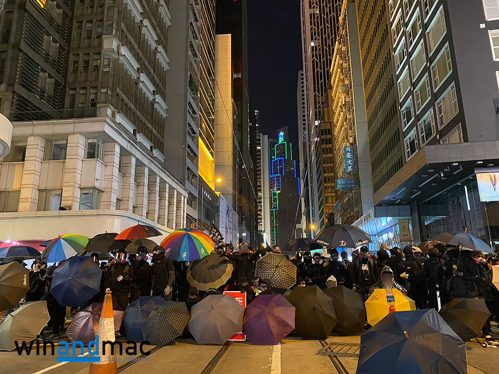 我們在上環近恒生總行位置,可看到有不少前線手足設好遮陣,以防防暴警在沒必要或突然情況下進攻。