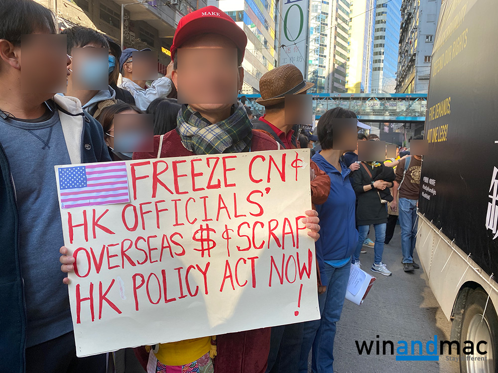 有抗爭人士稱,美國政府應該凍結香港和中國官員海外資產,制裁他們違反人權法。