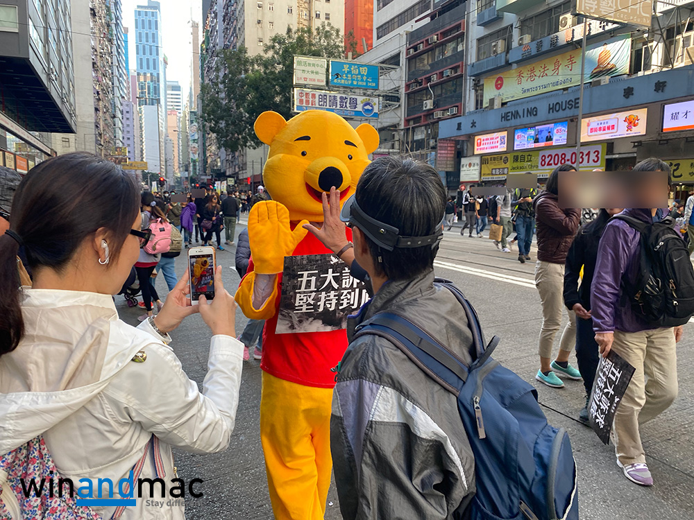有人穿上維尼熊的服裝,與抗爭人士一起打氣,並重申五大訴求。