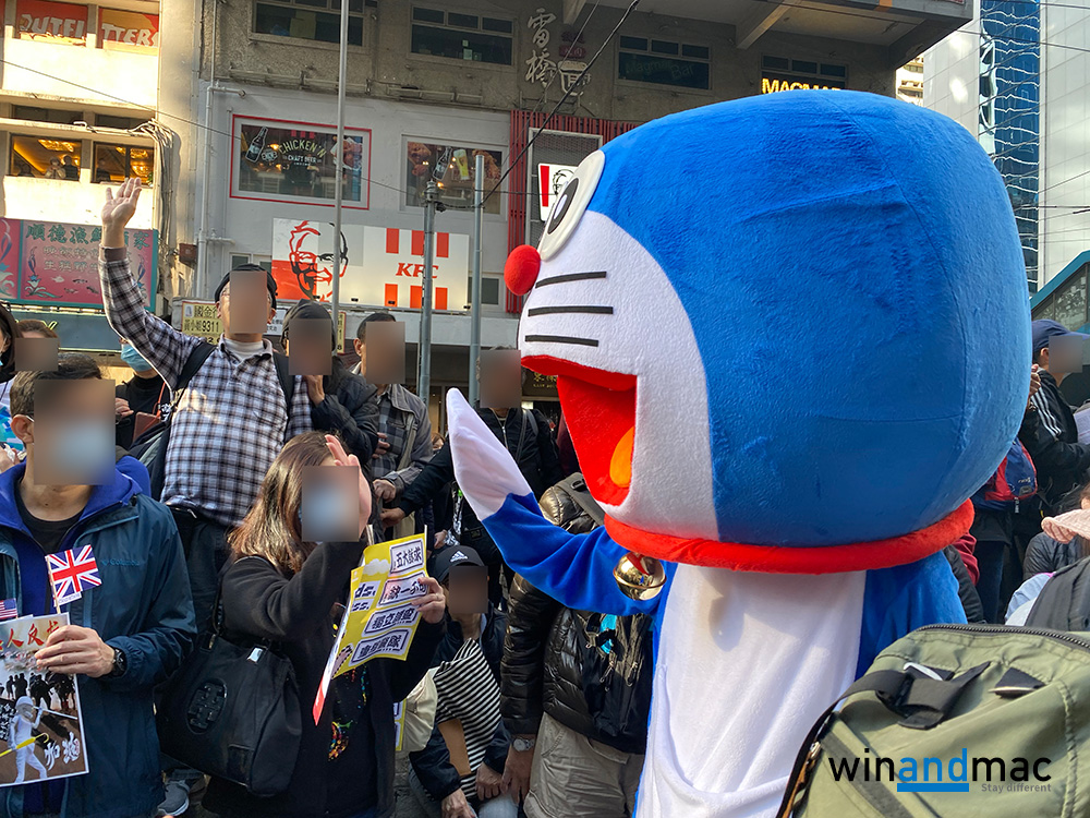 除了維尼熊外,疑似叮噹也來到現場為大家打氣。
