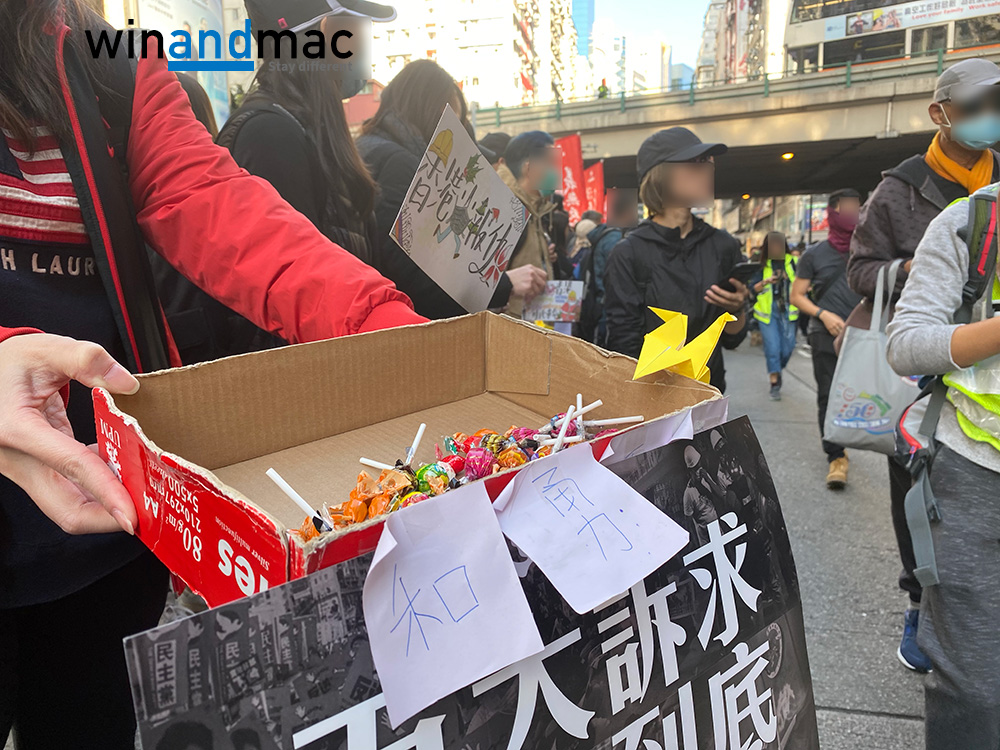 在這個艱難時期,不少人都樂意出來幫人,例如遊行中就有人沿途請大家食波棒糖,當作是另類打氣。