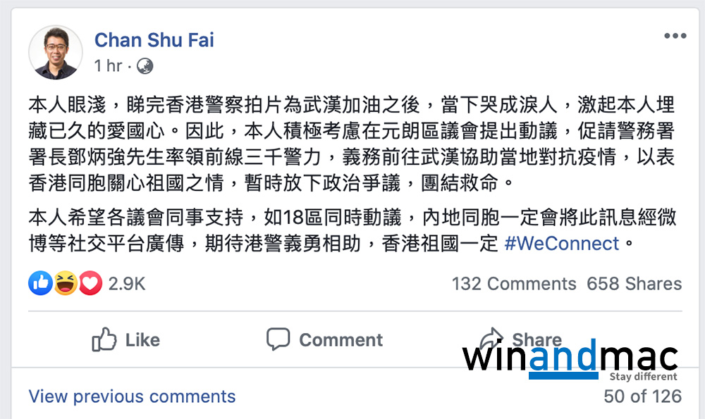 元朗區區議員陳樹暉良心動議  希望香港警察北上武漢同心抗疫